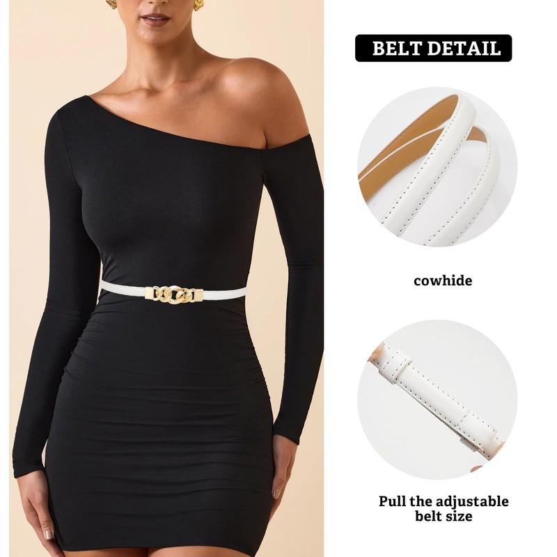 - Material: Our thin waist belt is made of pu leather and alloy, alloy buckle, classic gold buckle design, add more highlights to your clothing.