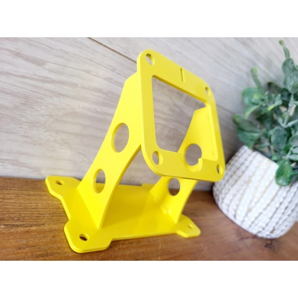This mount is made of 1/8" thick steel using a cnc fiber laser.