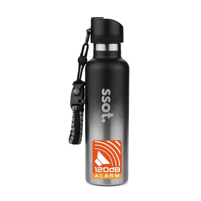Buzztle Bottle - 120 db Alarm, Multi-Functional, #304 Stainless Steel, Double Wall Insulation, BPA-Free, 24 Hours Warm up, Dishwashable - Black