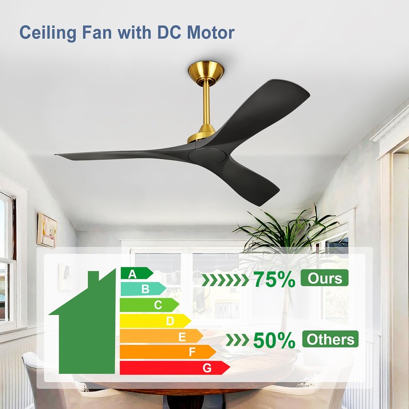 - 【Easy Remote Control, Convenient and Responsive】 - Simplify your 52" ceiling fan no light operation with the included remote (1.5V batteries not included), perfect for hard-to-reach places. With 1/2/4/8H timer, this 3 blades modern fan without light takes better care of your sleeping health in a more scientific way, ensuring that the modern ceiling fan runs almost noiselessly and the remote control is very easy to use.