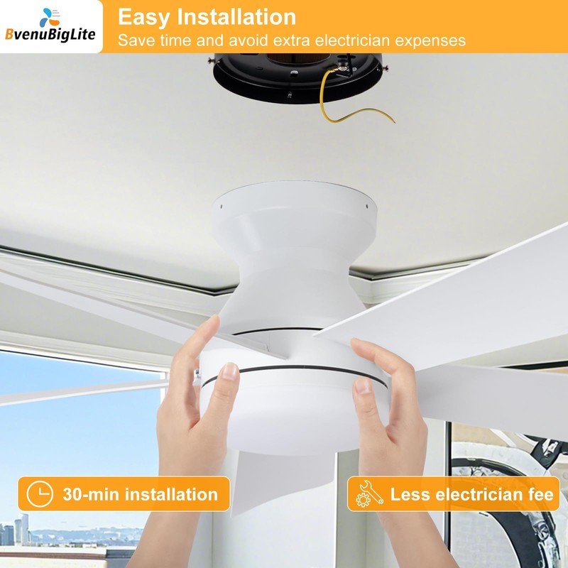 - 【Easy Installation】The bedroom ceiling fan come with detailed instructions and installation videos to help you install them. You can install the flush mount ceiling fan within 30 minutes by yourself, which not only saves time but also reduces your installation costs. Our ceiling fan with lights remote control are suitable for spaces such as bedrooms, living rooms, kitchens, farmhouses, offices. Also suitable for covered outdoor areas such as patios, porches, gazebos (Note: not waterproof)
