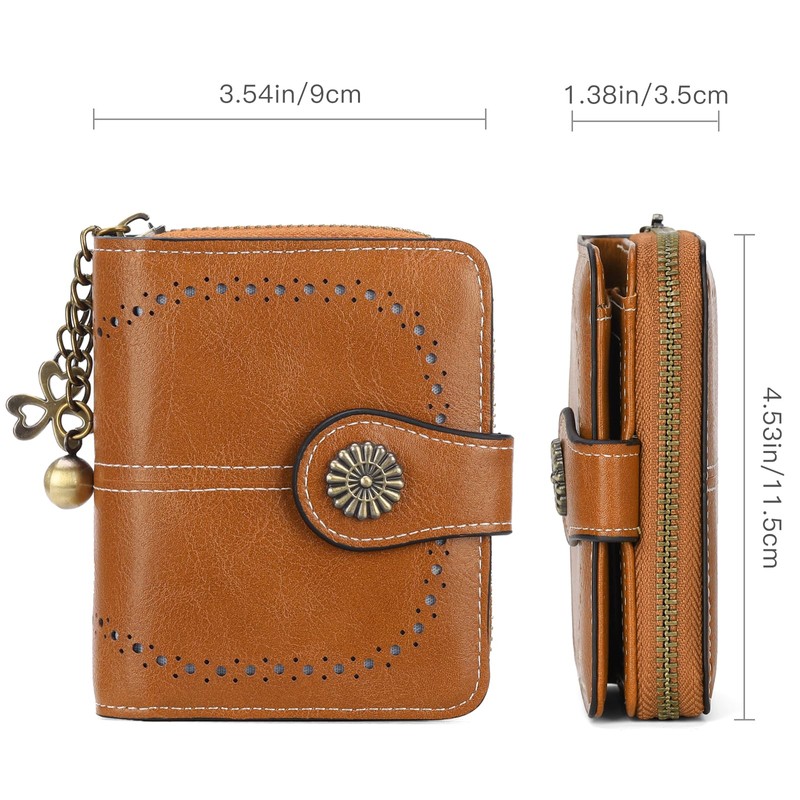 • Luxury Waxed Leather: Waxed leather, the ideal leather type for women's wallets, is used for this small bifold. It looks gorgeous and feels luxurious; the longer you use it, the better it will look and feel