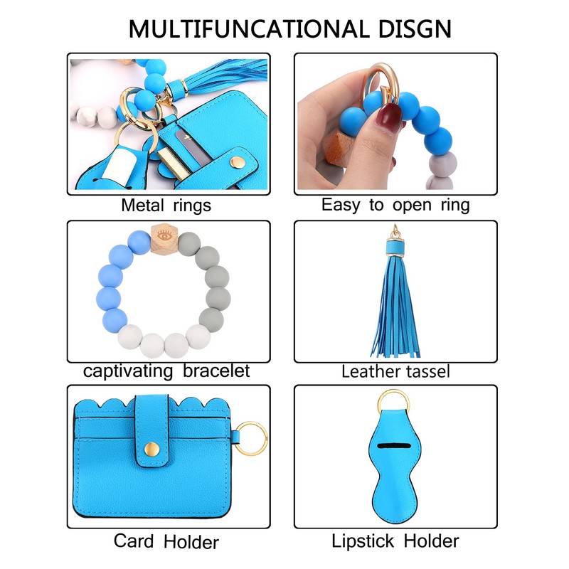 - Diseño multifuncional: integra cartera, llavero y un soporte para lápiz labial en una elegante pulsera de cuentas de silicona, con borla de cuero. Y la pulsera de silicona suave es lo suficientemente elástica para ir alrededor de tu muñeca, la cartera puede contener tarjetas de identificación, tarjetas de crédito, licencia de conducir y dinero en efectivo. No solo libera tus manos, sino que también ahorra tiempo para encontrar tus llaves/tarjetas de crédito/dinero en efectivo en tu voluminosa bolsa cuando tienes prisa.