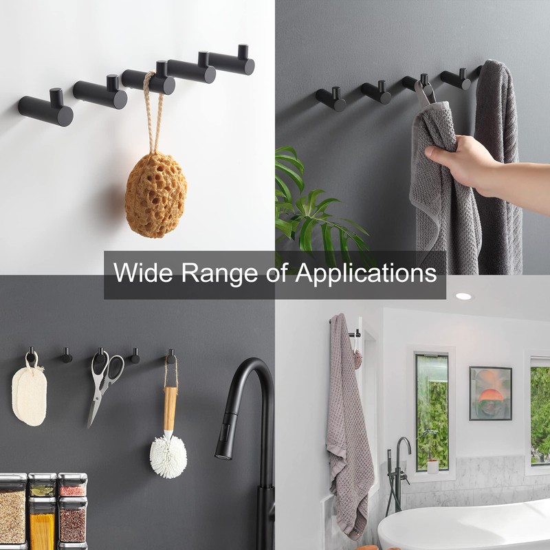 • DURABLE CONSTRUCTION BVL coat hooks black are made of 304 stainless steel, which can be built waterproof, sturdy, durable and long lasting. The beautiful and thick black coated surface of the stainless steel hooks have no burrs or tendency to leave fingerprints. The wall hooks coat rack are suitable for use in damp environments such as bathrooms, kitchens and gardens.