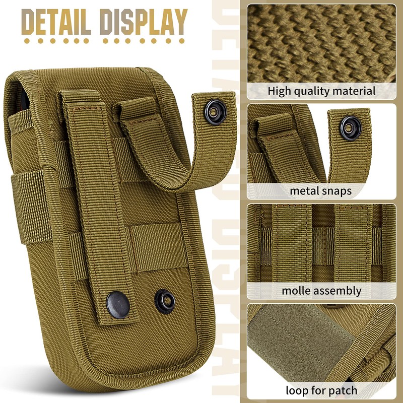 • Molle Assembly: molle straps with metal buckles give a lot of variety to clip on other molle compatibled items like belt, vest, backpack and etc.