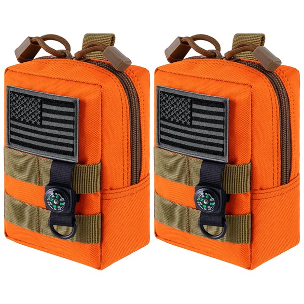 bvya 2 Pack Tactical Molle Pouch Multi-Purpose Compact Waist Pack Water-Resistant Small Utility EDC Pouch with Flag Patch for Molle Backpack, Mini Compass Included