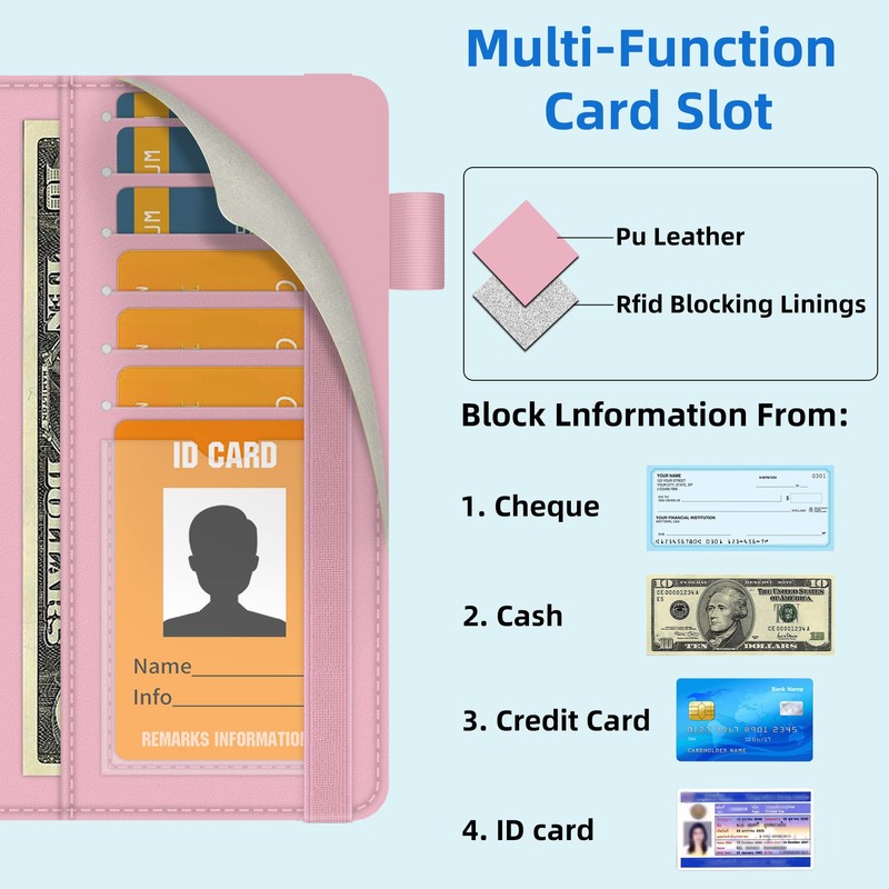 - RFID BLOCKING: Our checkbook cover with advanced RFID blocking technology which can effectively protect credit cards, debit cards, driver license and ID cards from scanning by unauthorized equipmetns. You don't need to worry about leakage of your valuable personal information which is stored in your credit cards and drivers license.