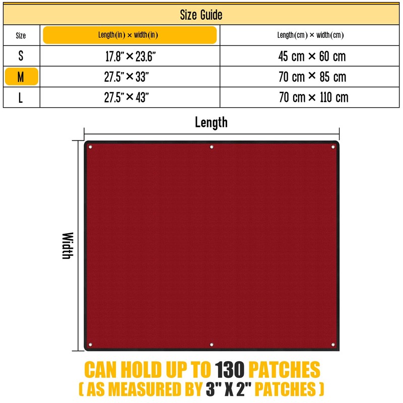 bvya Tactical Board Patch Organizer Holder Display with Loop Surface, Steel Ring for Morale Uniform Hook and Loop Emblems, 1 Flag Patch Included (Red, Medium: 33" x 27.5"/85 CM x 70CM)