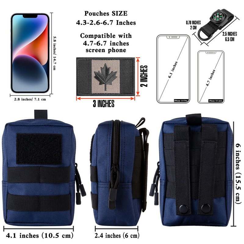 - Size: 5.9" x 3.9" x 2.4" / 15cm x 10cm x 6cm(Hx Lx W). The main compartment is great for storing mobile phone, tactical pen, key chains, GPS device, digital camera, medical supplies or other small personal items. With 1 internal slip pocket, for holding cash, cards and other small personal stuffs. Exterior hook and loop for morale patch.