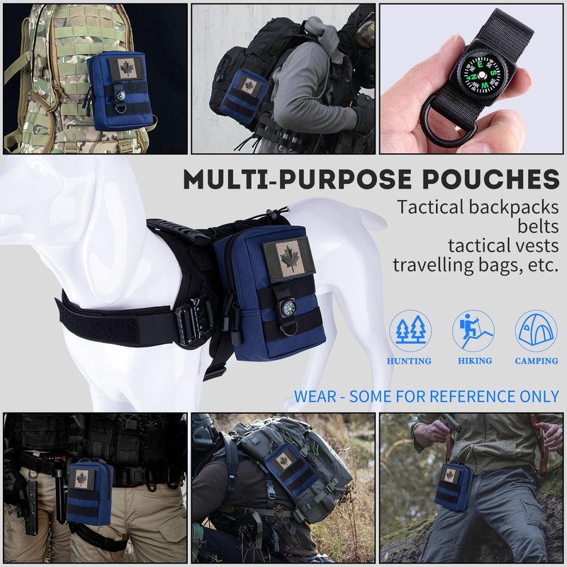 bvya Tactical Molle Pouch Multi-Purpose Compact Waist Pack Water-Resistant Small Utility EDC Pouch with CA Flag Patch for Molle Backpack, Mini Compass Included
