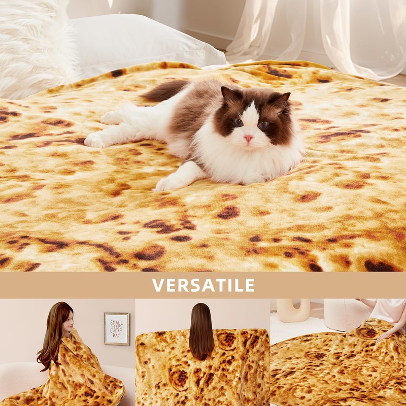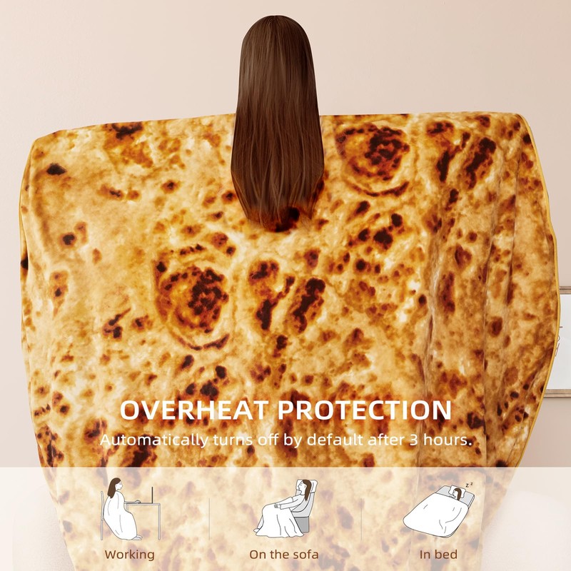 - MULTI-FUNCTIONAL & CONVENIENT: With a 6.56ft power cord, this heated throw is perfect for use on a bed, sofa, in a study, or at the office, allowing you to stay warm without being limited by a nearby socket. It provides comfort and security, making it an excellent gift for warmth and protection. Plus, the fluffy burrito pattern adds a fun touch to your life, making it even more enjoyable to snuggle up.