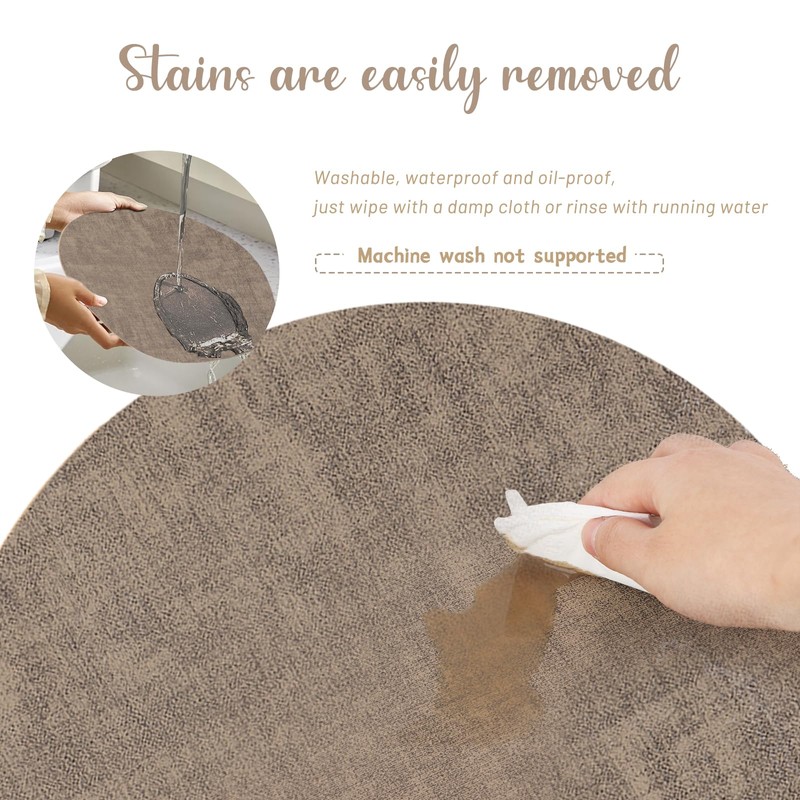 - 【Easy to Clean】The round washable placemats has a surface texture that mimics linen, very easy to clean, washable, waterproof, oil-Proof, just wipe with a damp cloth or rinse with tap water. (Machine wash not supported)