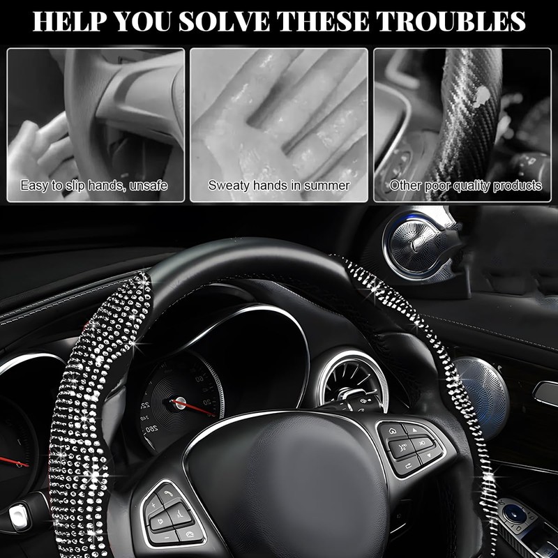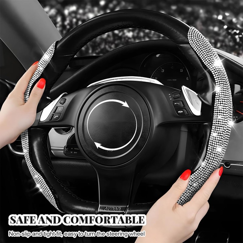 - Powerfully Antislip: The rhinestones make the surface of the wheel wrap cover granular, increasing the friction between your palm and the cover. It can reduce the risk of skidding and enhance driving safety. In addition, the three-dimensional texture makes it effortless for you to grasp