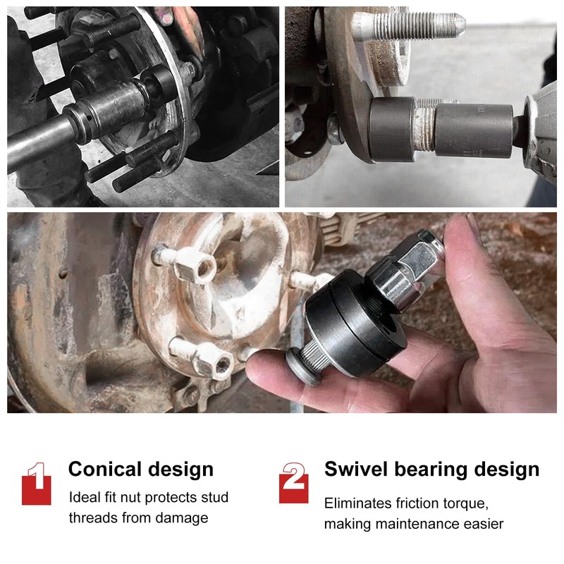 - Practical Function: This installer is engineered to assist with safe and efficient replacement of wheel studs by guiding the stud into place while supporting the nut during tightening. It reduces the chances of thread damage and improves overall accuracy in installation