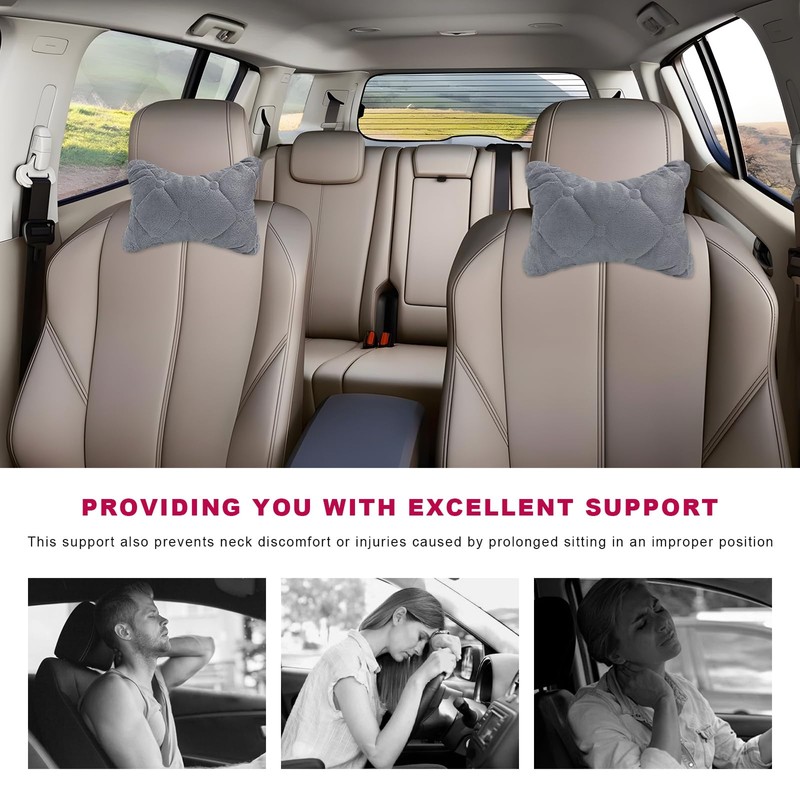 - Widely Applicable: The car neck pillows measure 10.6 × 7.3 × 3.1 inches. They are applicable to most cars, SUVs, trucks, and so on. You can use them on the driver's seat, the front passenger seat, and the back seat. Besides, you can also use it in the office, which has wide application