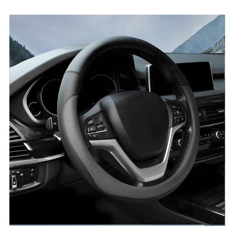 - Quality Material: Made of premium PVC leather, this steering wheel cover is soft and comfortable to the touch. The surface is slightly textured to provide a non-slip grip. It's also breathable, keeping your hands cool in summer and warm in winter, providing all-season driving comfort