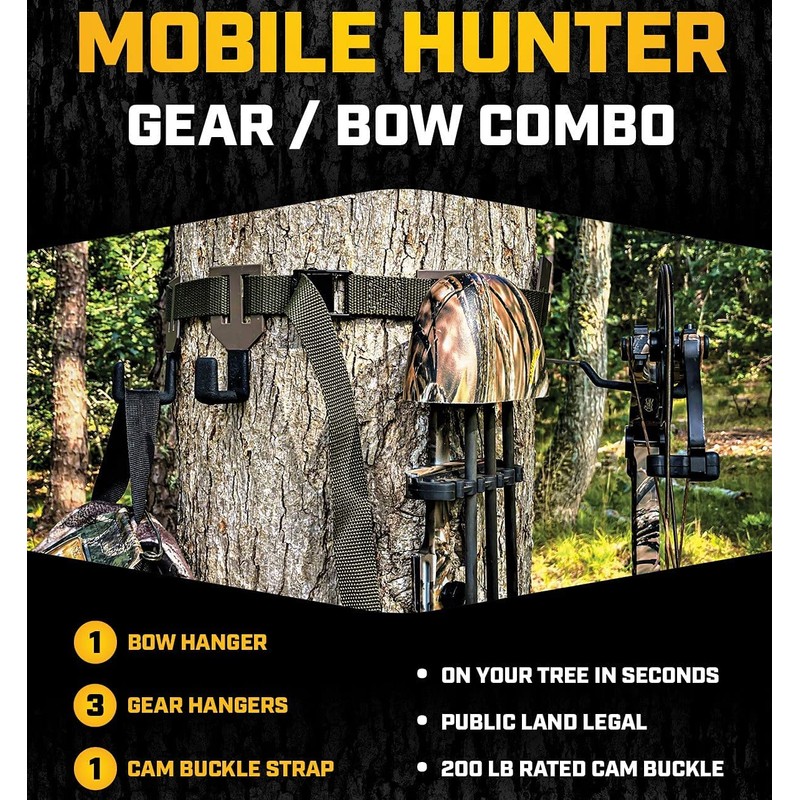 bwd Bow/Gear Combo Hanger - Ultimate Bow Hanger & 3 Wide Gap Gear Hangers - No Wobble, Lasts a Lifetime - 300 lb Capacity - Tree Mount - Minimalist Style