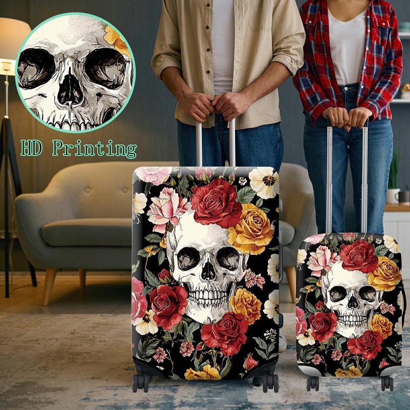 BWEGRHE Luggage Cover Plus - Sugar Rose Skull Travel Suitcase Cover for 18-20 inch Luggage (S) with Concealed Zipper, Washable Elastic Cloth, Dustproof, Anti-Scratch