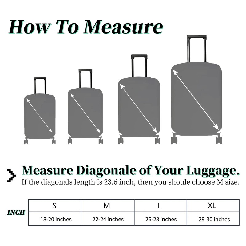- ✈ 4 Sizes Available Suitcase Covers for Luggage: S (Fit 18 - 20 inch luggage),M(Fit 22 - 24 inch luggage),L(Fit 26 - 28 inch luggage),XL(Fit 29 - 30 inch luggage),If your luggage is soft shell style,please order a bigger size.Come with a matching Luggage Tag (PU Leather)