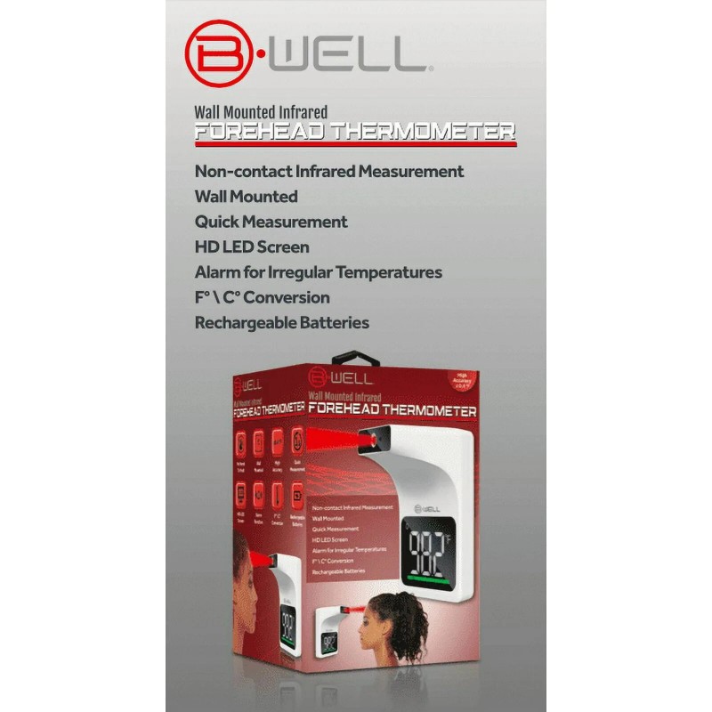 BWell Bluetooth Wall-Mounted Contactless Infrared Forehead Thermometer with Larg