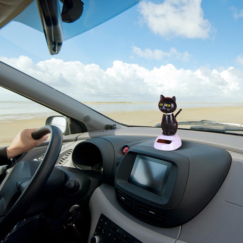 The cat figure is designed to move its head and tail when exposed to sunlight, creating a fun and interactive decorative piece for your car or home.