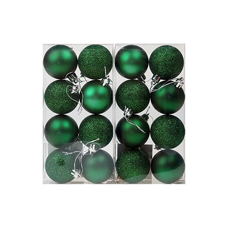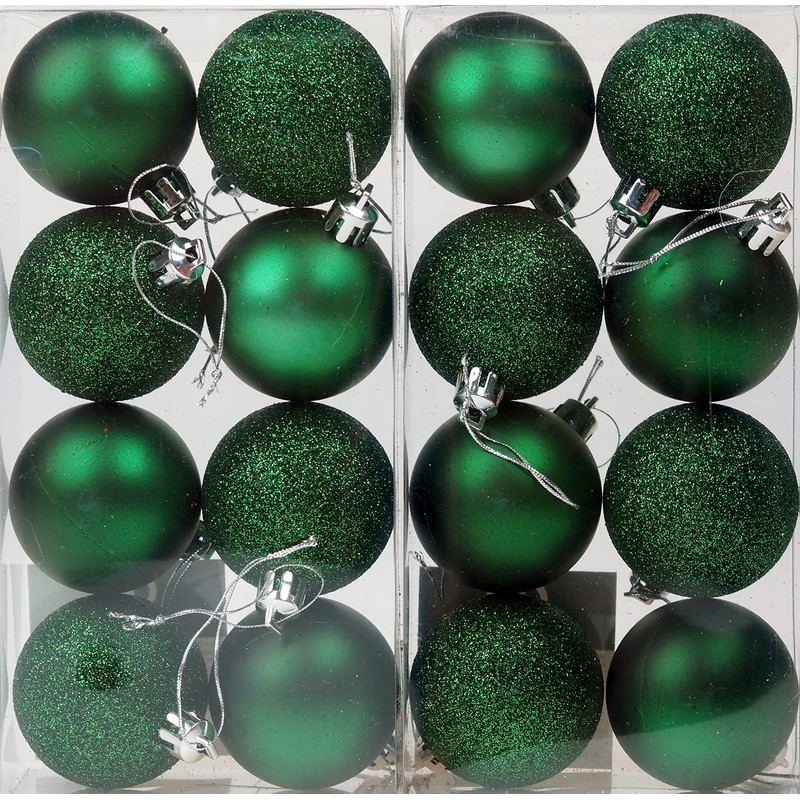 BWG Set Of 16 Emerald Green Christmas Tree Baubles Decorations