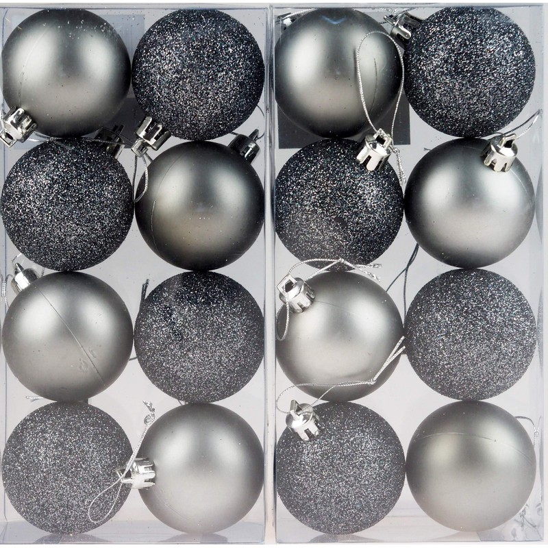 BWG Set Of 16 Graphite Grey Christmas Tree Baubles Decorations