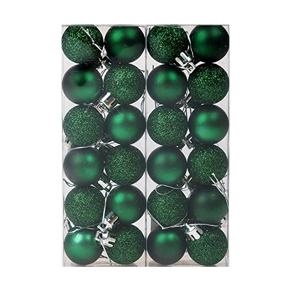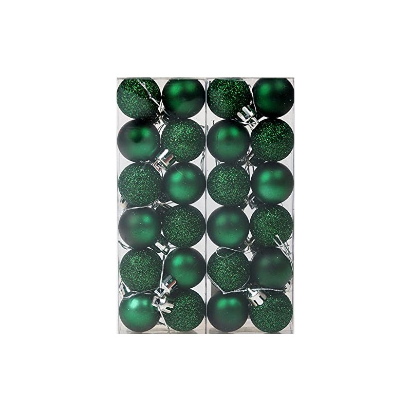 BWG Set Of 24 Mini Christmas Emerald Green Glitter Tree Baubles Decorations