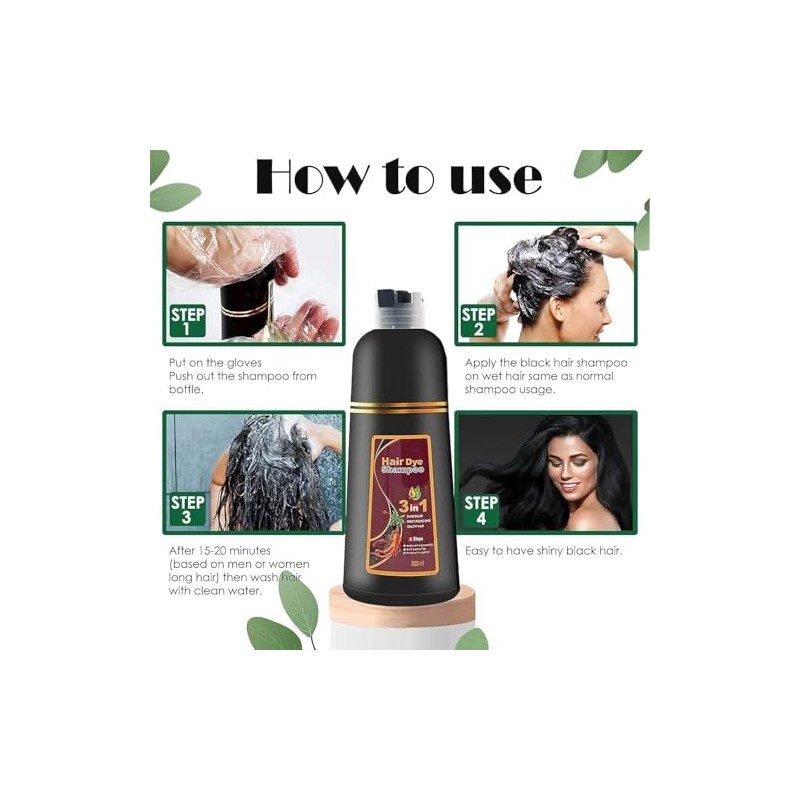 - 🌱 Shampoo Tinte 3 en 1 para Cabello Negro: 🌟 Sin parabenos ni químicos agresivos, cuidando tu cabello. 🌟 Funciona como tinte, shampoo y acondicionador, todo en uno. 🌟 Cuida tu cabello mientras lo tiñe, dejándolo suave y manejable con cada uso.