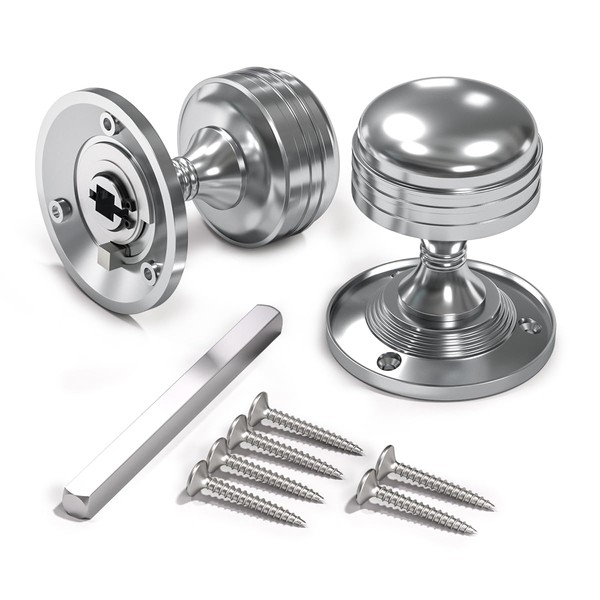 Bwintech 1 Set Ringed Mortice Door Knobs,Chrome Finishing Pull Door Handle Knobs for Interal Doors