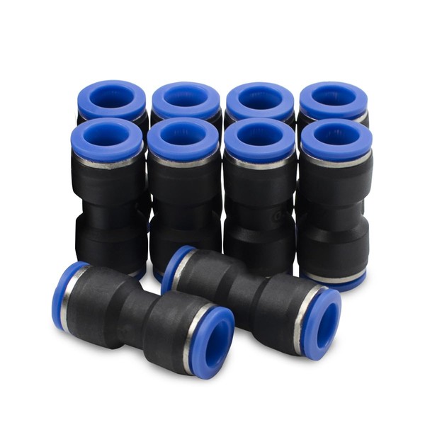 Bwintech 10 Pcs 10mm Straight Push in Connect Pneumatic Fitting,2 Way Plastic...