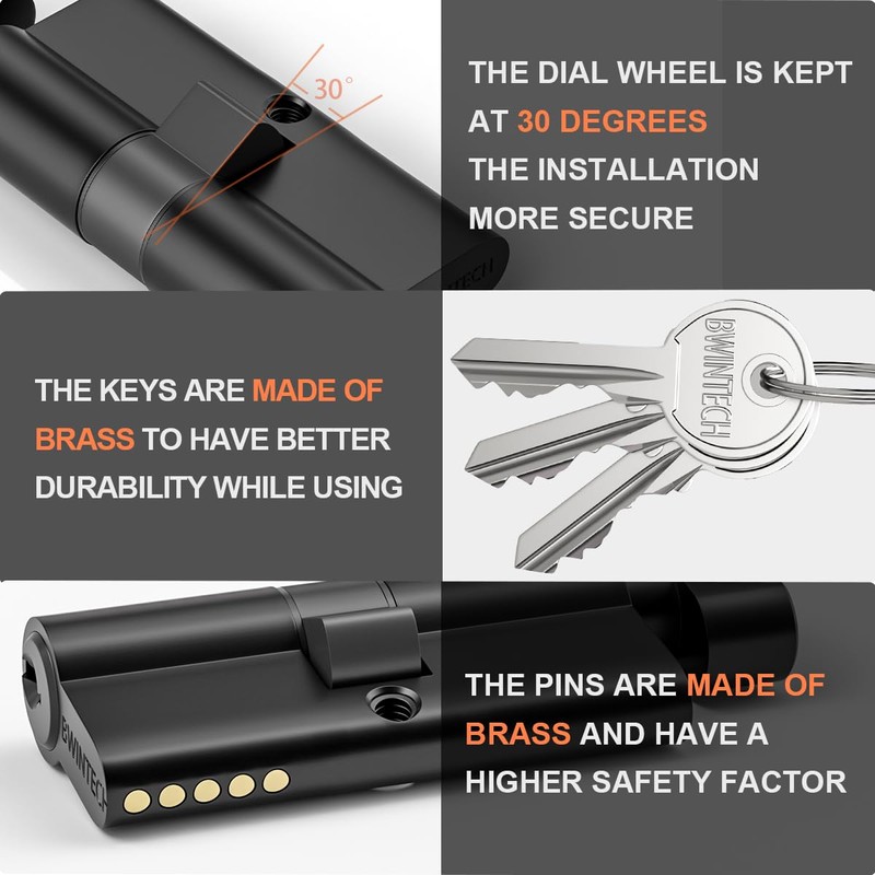 - High Security: Our lock cylinder has a variety of stable security functions, the lock cylinder and key made of solid pure copper have the functions of Anti-picking, Anti-drilling, Anti-snap, Anti-Bumping, and also fireproof characteristic.