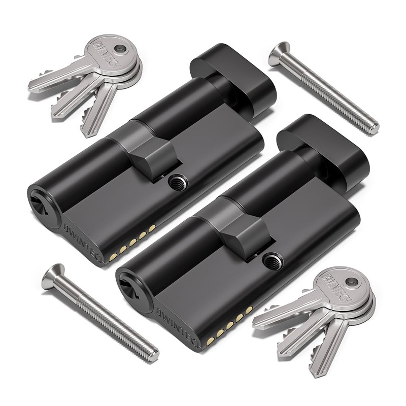 Bwintech 2 Pcs Keyed Alike 80mm (40T/40) Black Euro Cylinder Lock,Door Barrel Lock,Thumbturn Knob with 6 Standard Keys,Anti-Pick,Anti-Bump,Anti Drill,High Security for UPVC,Wooden,Composite Doors