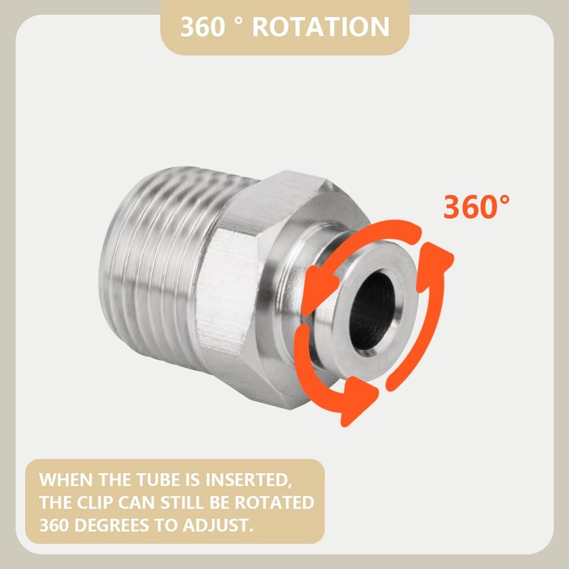 - Easy to intall: no additional seal is required, just a simple pressure to connect the pipe and they are firmly connected. In addition, these fittings are flexible and space-saving, 360 degree free rotation.