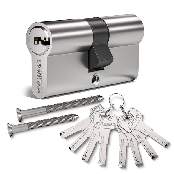 Bwintech 70 mm (35/35) Nickel-Zinc Alloy Euro Cylinder Lock, Door Drum Lock, Key Key with 8 Horizontal Dimple Keys