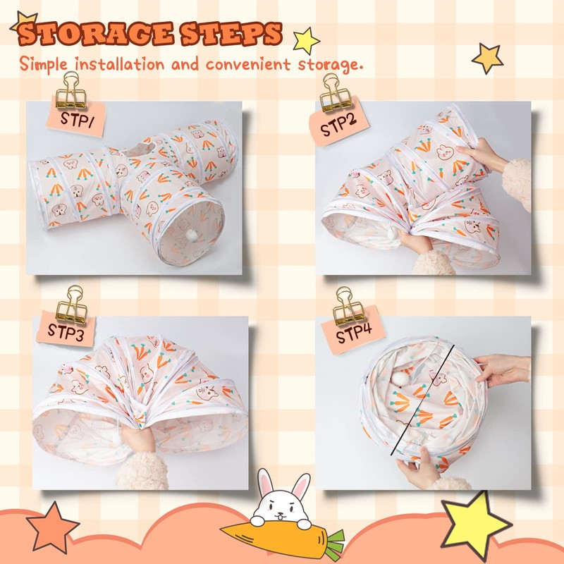 - Special Design - Our bunny tunnel with 3 spacious tunnels, peephole & movable ball toy, this rabbit toy gives your bunny more ways to have fun,the carrot pattern will attracts your small pet to play,keeping your rabbit entertained for long hours.