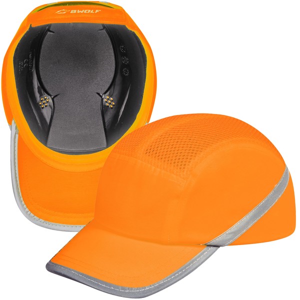BWOLF TRIVOR Bump Cap Men's Safety Cap Safety Helmet with ABS Shell EN 812 with Reflective Strips Protective Helmet Cap, HV Orange