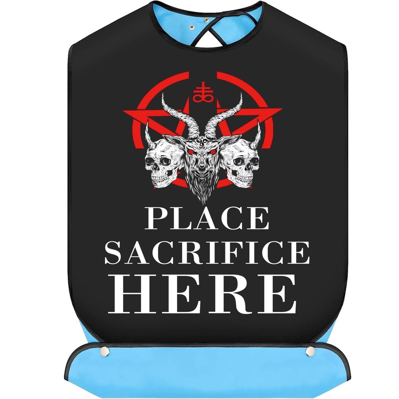 BWWKTOP Place Sacrifice Here Adult Bibs With Crumb Catcher Baphomet Satanic Gift Hail Seitan Goat Eating Clothing Protectors (PLACE SACRIFICE)