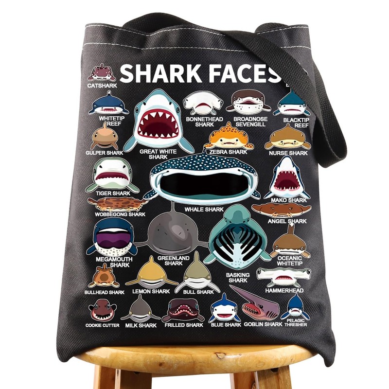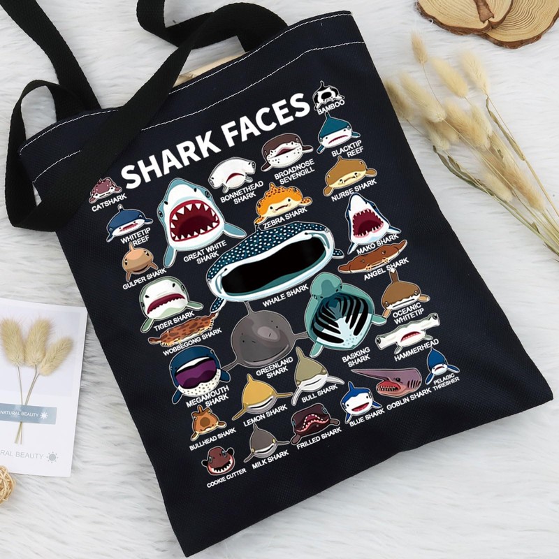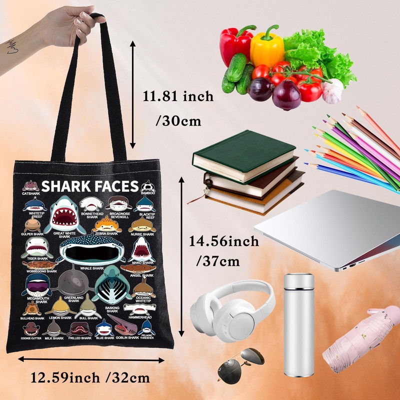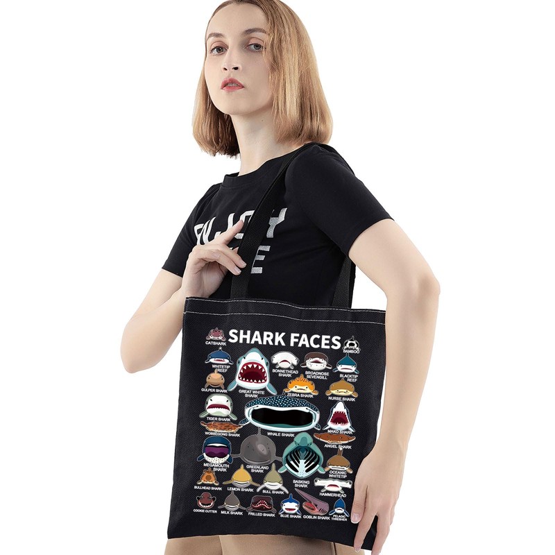 BWWKTOP Shark Face Canvas Tote Bag Shark Lovers Gifts Shark Reusable Grocery Bags Shark Merchandise (shark face BL)