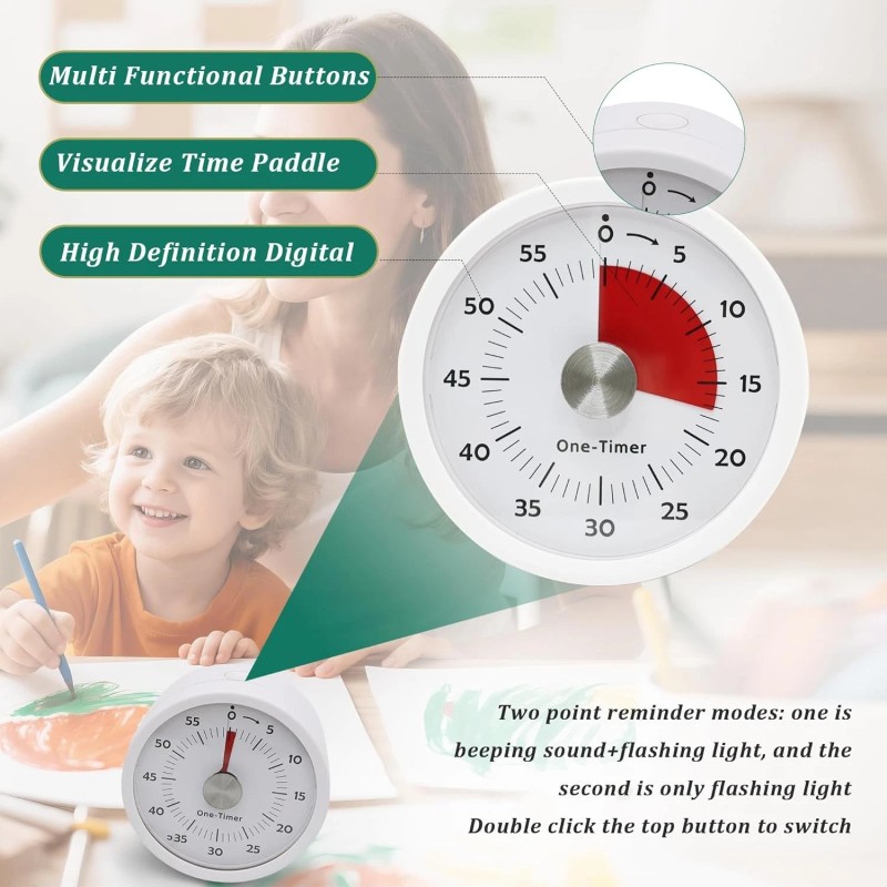 • 【 Quiet Work 】 This visual timer adopts a quiet design, without the noisy ticking sound, allowing you to have a quiet and focused environment whether you are studying or working