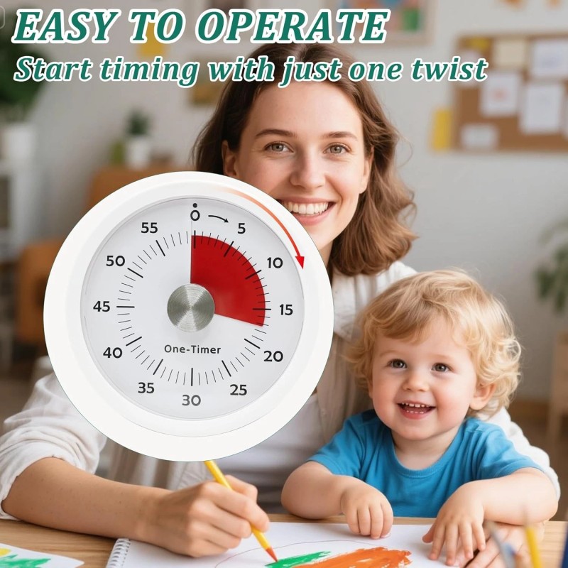 • 【 Visual Dial 】 The two-tone dial shows the remaining time more intuitively. The numbers are large, clear and easy to read, making it more suitable for time management than an hourglass and simpler to set up than a digital timer. The timer lasts for 60 minutes. It is exquisitely designed and easy to use, suitable for people of all ages