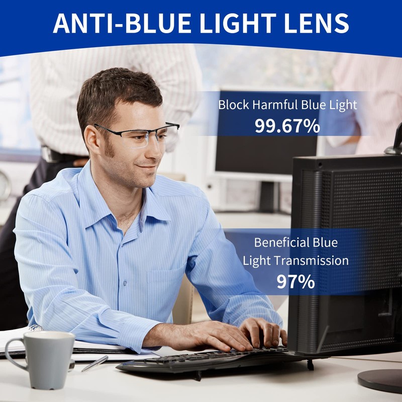 - 👓👓【 Blue Light Filter Reading Glasses 】: 3.75 Blue light readers resist 97% harmful blue light, reduce the visual fatigue, glare and discomfort from the mobile phone, tablets, computer and working.Mens blue light readers glasses greatly help you to reduce eye strain, blurred vision, headache, and improve your sleep quality.