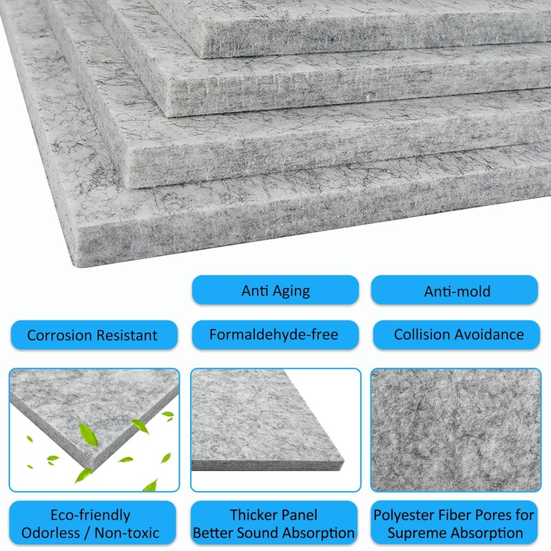 - 【ECO-FRIENDLY】: Odorless, Non-toxic, Formaldehyde-free, Class B1 Flame Retardant, Corrosion Resistant, Anti aging, Safe acoustic tiles for indoor use