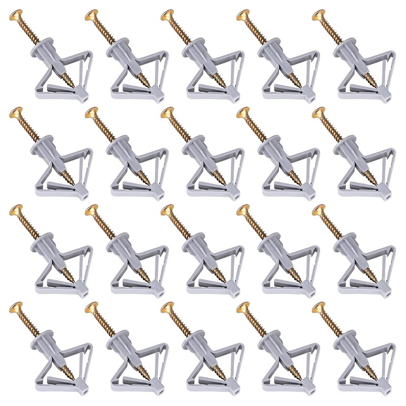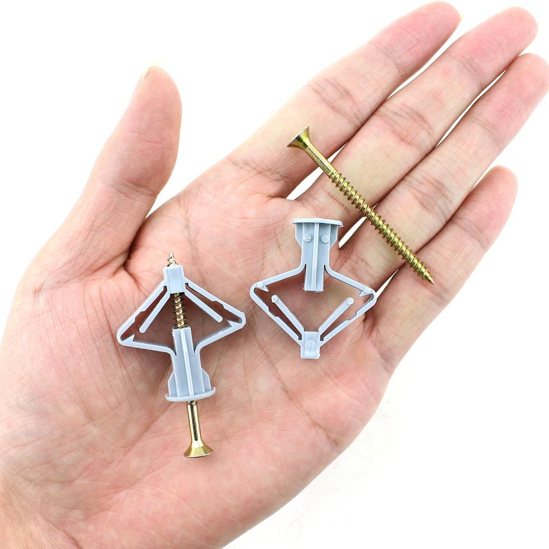- Scientific design:Self locking design, very easy to install and use. Tighten the screws, the plastic plasterboard anchors will expand and contract on their own to enhance the fixing force.