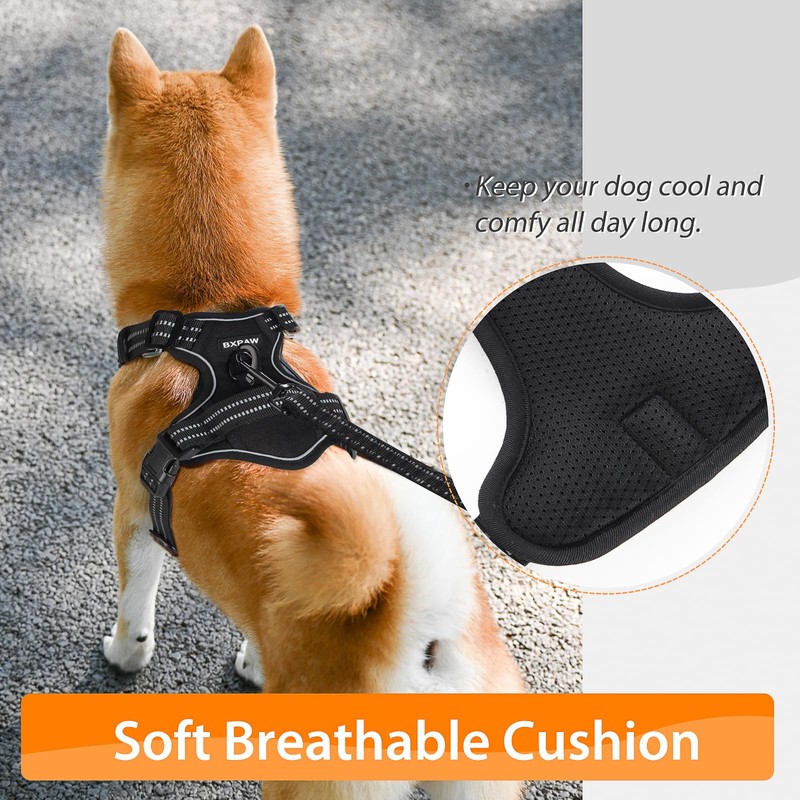 BXPAW Dog Harness,No Pull Pet Harness Adjustable Reflective Pet Harness Easy Control Handle for Small to Large Dogs Soft Padded Puppy Vest (Black, Extra Large)