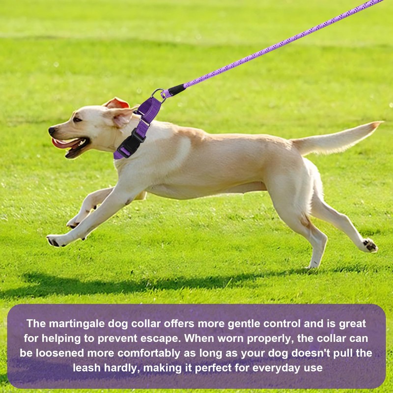 BXPAW Martingale Collar for Dogs,Reflective Martingale Dog Collars with Quick Release Buckle,Adjustable Nylon No Pull Dog Collar for Dogs Walking Training (Purple, Large)