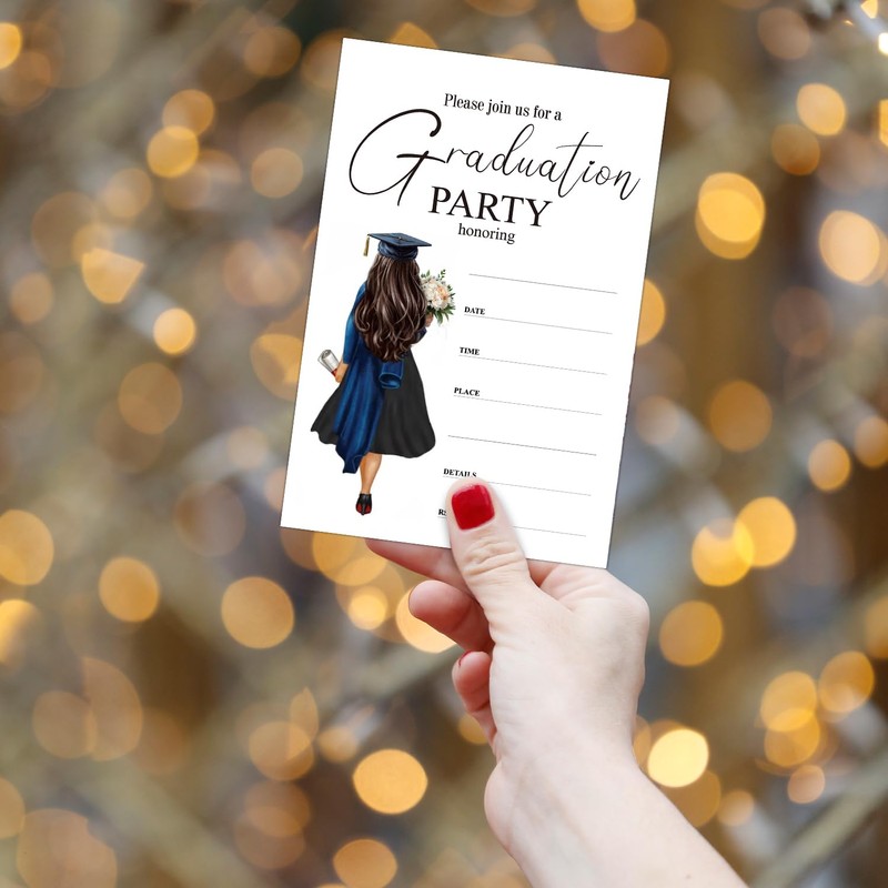bxtala Female Graduation Invitations with Envelopes, Junior High School College University Master Grad Party Invites, Sorority Party Event Supplies Set of 20 - A06