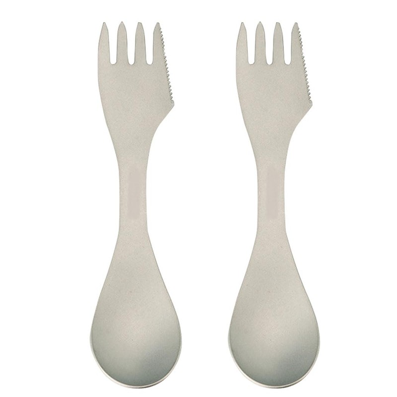 BY-J Titanium 2 in 1 Fork and Spoon Combo 2-Pack Ultra Lightweight Camping Utensil, for Backpacking, Hiking, Outdoors