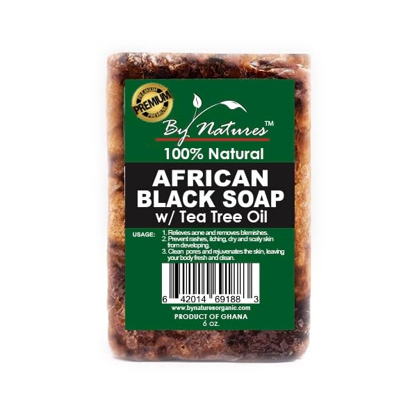 By Natures 100% Natural African Black Soap With Tea Tree Oil 6.0 Oz (Pack of 1)