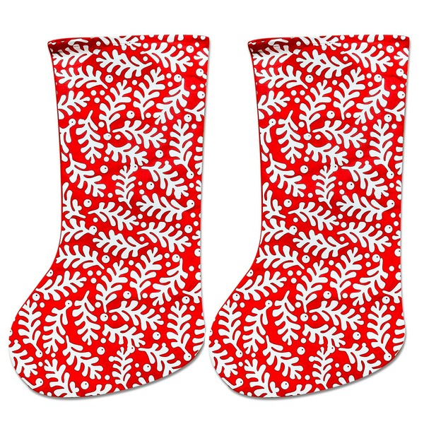 By Robelli 2pc Large Fun Festive Fabric Felt Red And White Stocking Sacks (60cm Mistletoe Holly Repeat Pattern) (2x Mistletoe Holly Repeat Pattern)